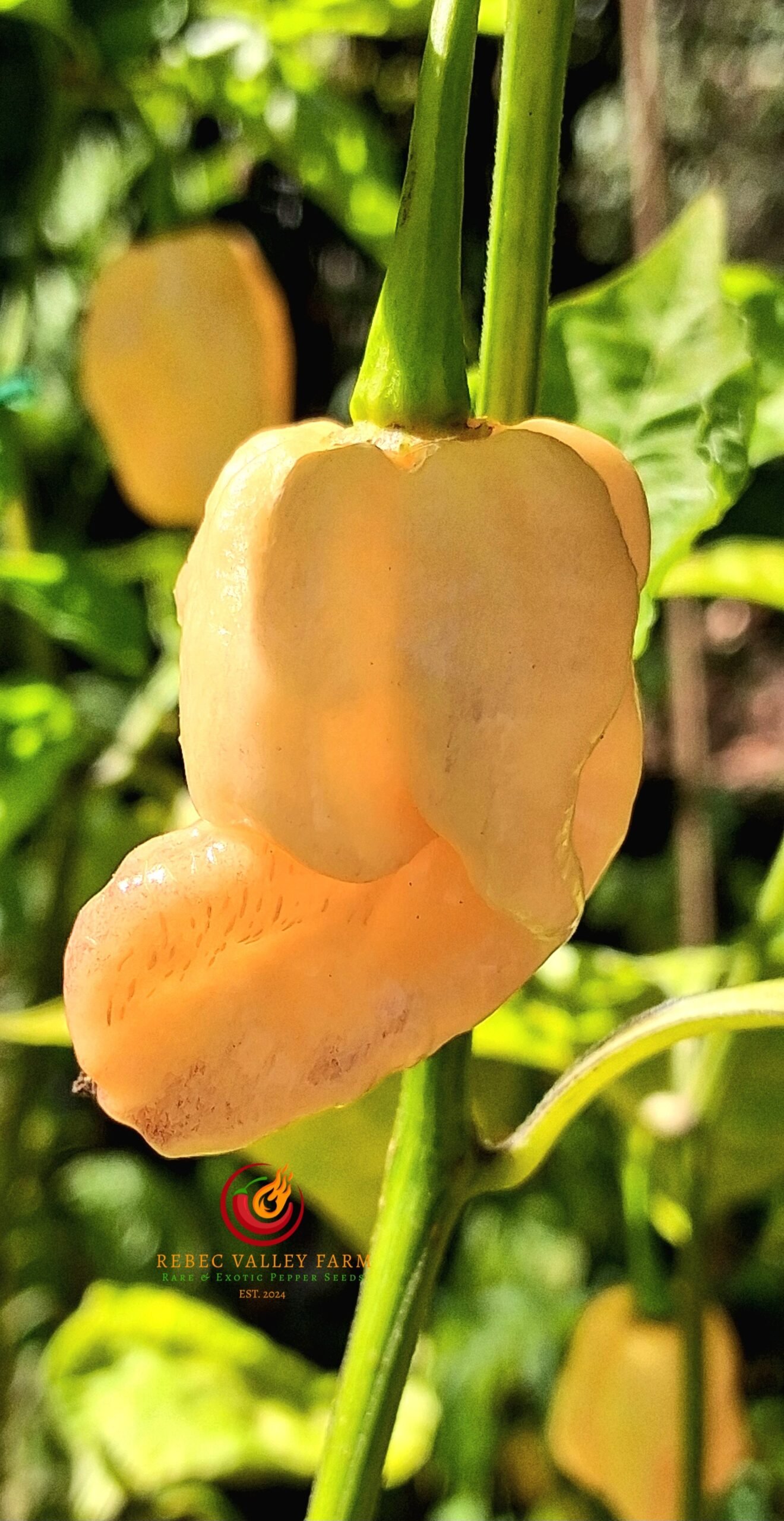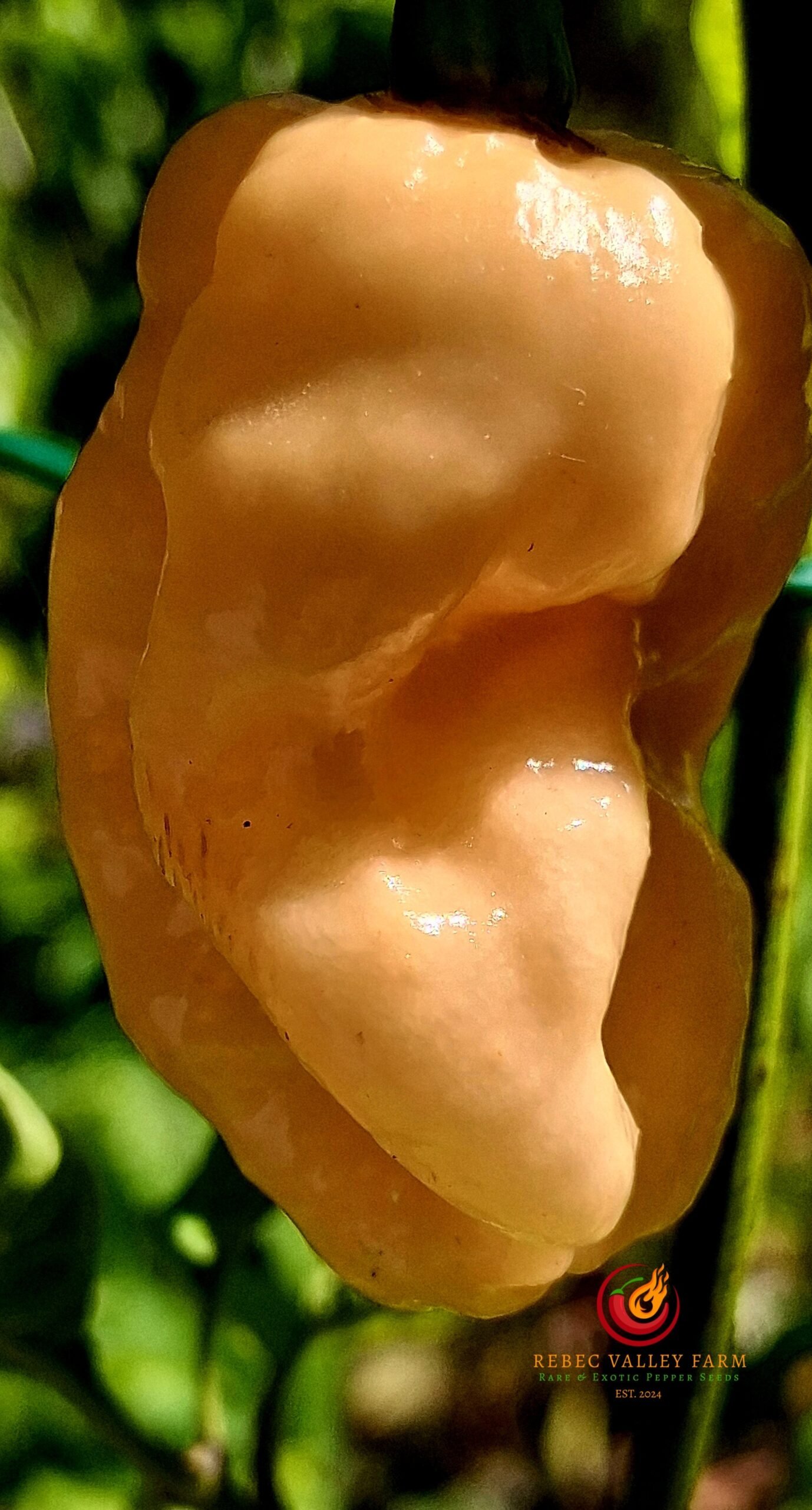 The MAMP BBG Peach Pepper is an excellent addition to any garden. This variety is known for its intense heat and striking appearance with a bleeding calyx. Our MAMP BBG Peach, however, ended up being a green leaf variant without a bleeding calyx. It’s still a stunning variant without the bleeding calyx. High yielding, unstable variety, with stunning peach-colored pods.