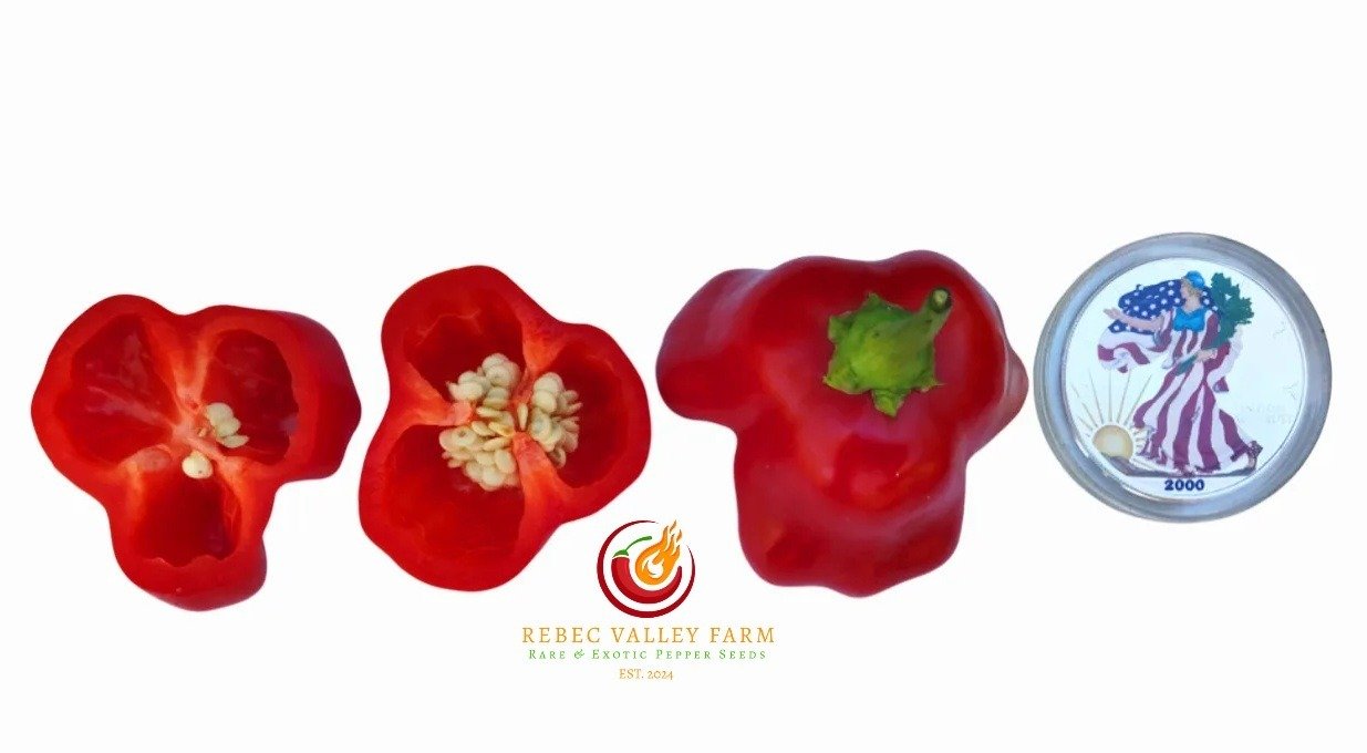 The Ubatuba Cambuci Pepper hails from Brazil and is referred to by many other names: Bishop’s Crown, Bishop’s Hat, Christmas Bell, Joker’s Hat, Balloon Pepper, Orchid Pepper, and Pimenta Cambuci.